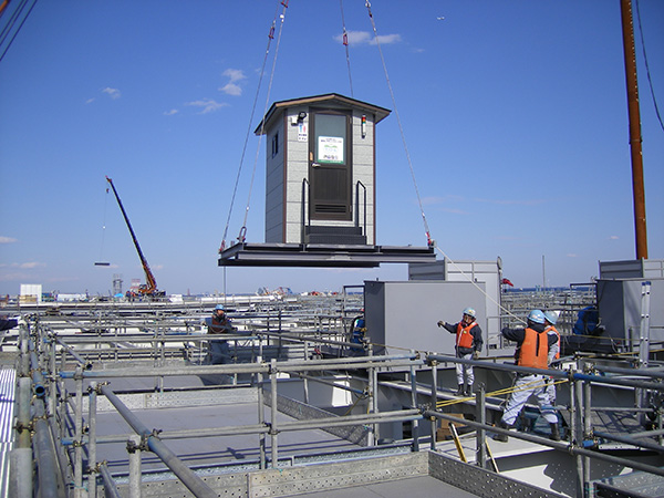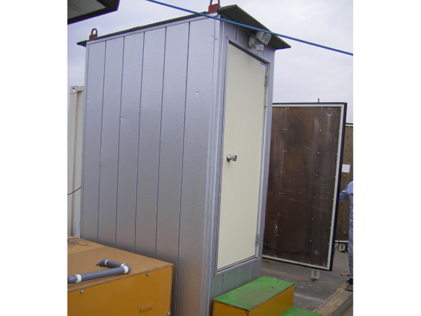 バイオトイレ本体は150kgを超えますので、現場によっては搬送が難しい場合があります。また建物一体型の場合はユニックトラックで搬送・設置しますので、トラックが入れない現場などでは設置が難しくなります。そのような場合でも当社の「ビオクリーン」はトイレ本体あるいは建物に関してもパーツごとに分解して搬送し、専門技術者が現地で責任を持って完成品として組み立てますので、どのような場所でも設置が可能になります。