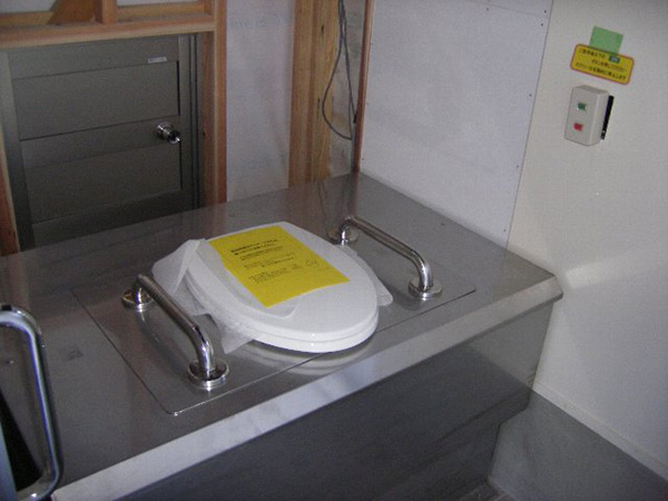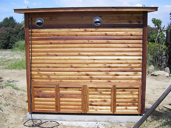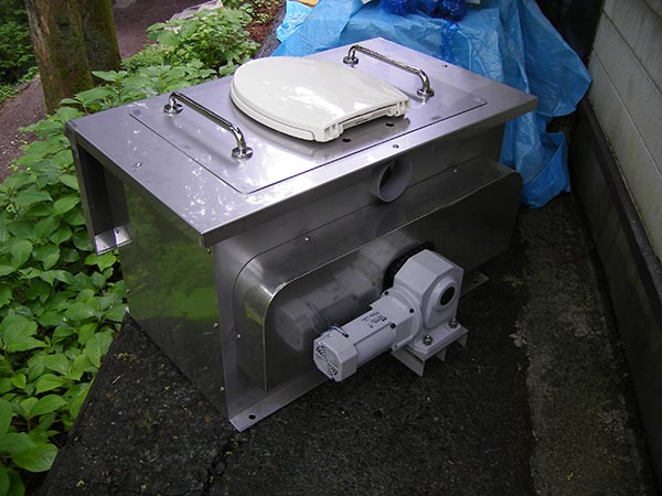 バイオトイレの本体のみを既存の建物の内部に組み込む形で設置したものです。下水道が敷設されていない個人宅や別荘で利用されています。排出されるオガクズを家庭農園の堆肥として利用されている方もいらっしゃいます。