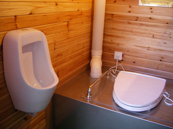 別荘地では下水道が貧弱あるいは浄化槽式の場合が多いようです。当社のバイオトイレ「ビオクリーン」は床下にポンっと置くだけですので、施工業者さんの負担も少なく設置することができます。水の使用量を注意すればシャワートイレを付けることもできます。また排出されるオガクズは堆肥として再利用できますので、庭の菜園などに利用していただいています。