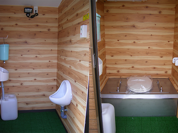 広い駐車場の入口から離れた場所などは、下水道本管からかなりの距離があるので水洗トイレを設置するのにはかなりのコストがかかります。当社の「ビオクリーン」は臭くない簡易トイレとして活躍しています。
